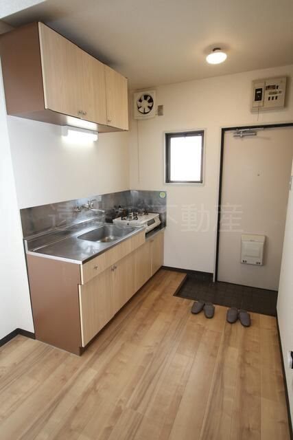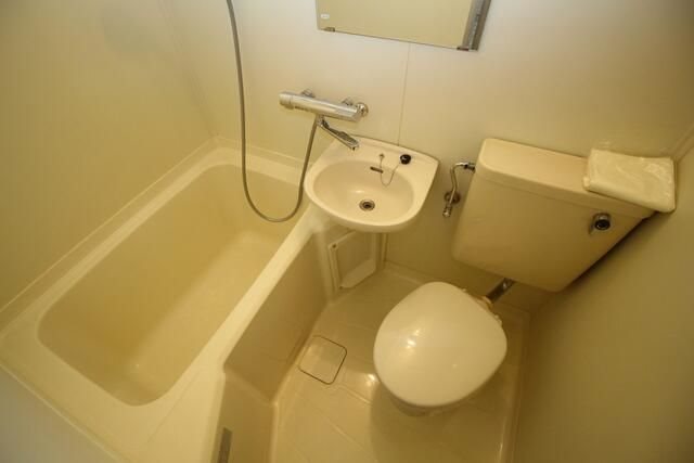 - 2口コンロ,ユニットバス,バス有,シャワー,バストイレ同室,トイレ有,エアコン,照明付き,BS,光ファイバー,TVインターホン,室内洗濯機置場,クローゼット,シューズボックス,ガス(プロパン),下水(公共下水),水道(公営),電気